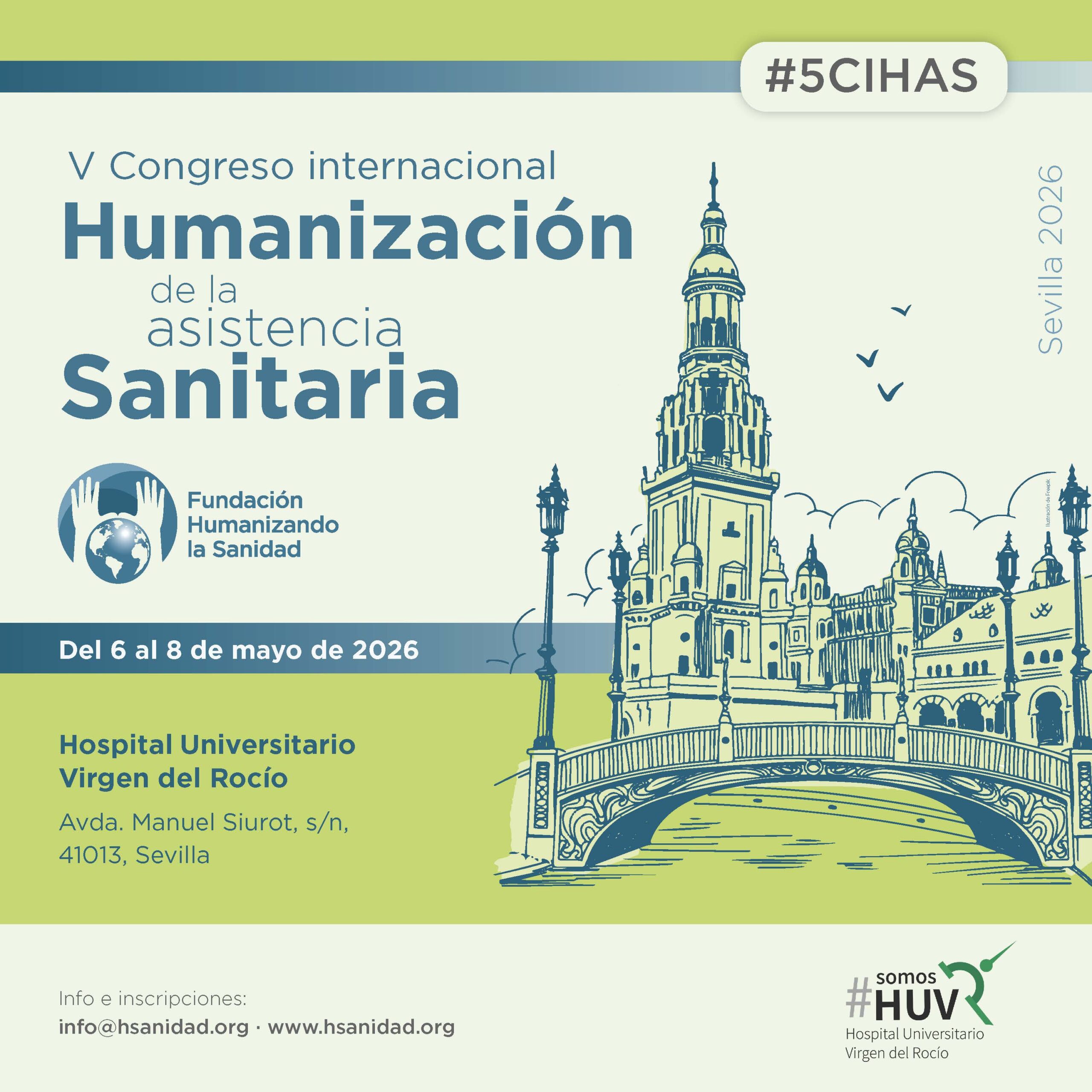 El próximo mes de mayo, en el Hospital Universitario Virgen del Rocío de Sevilla, se celebrará el V Congreso Internacional de la Humanización de la Asistencia Sanitaria, organizado por la Fundación Humanizando la Sanidad (FHS). Una cita imprescindible para compartir trabajos científicos, reflexiones y experiencias en torno a la humanización de la asistencia sanitaria. NO TE LO PIERDAS!!!. Toda la información e inscripciones desde este enlace: #5CIHAS